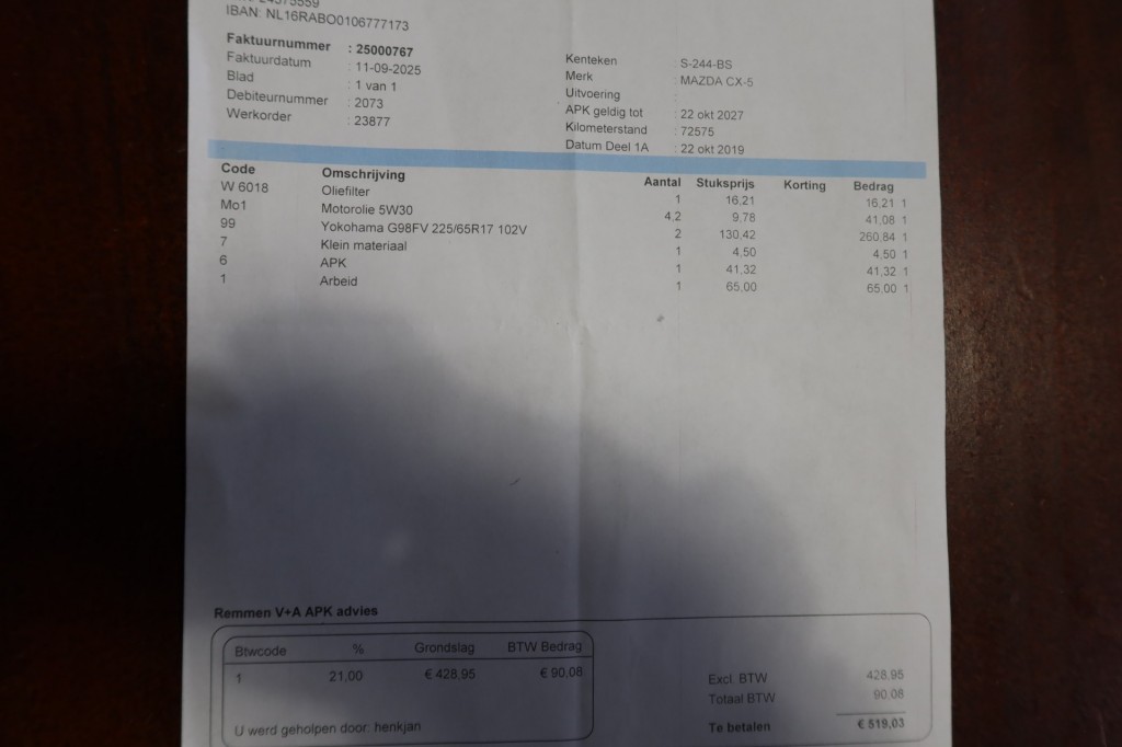 | Wegenbelasting | € 253 p/kw info |