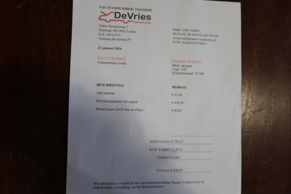 Wij Hebben het volgende bij onze service partner laten uitvoeren: